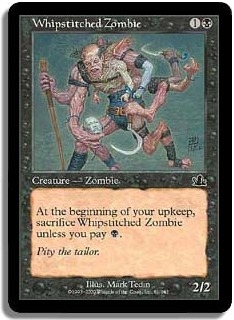 At the beginning of your upkeep sacrifice Whipstitched Zombie unless you pay B.