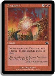 Destroy target land. Devastate deals 1 damage to each creature and each player.