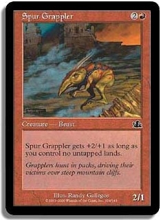 Spur Grappler gets +2/+1 as long as you control no untapped lands.
