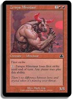 First strike 2: Zerapa Minotaur loses first strike until end of turn. Any player may play this ability.