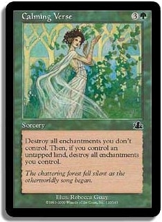 Destroy all enchantments you don't control. Then if you control an untapped land destroy all enchantments you control.