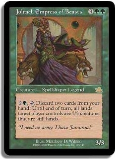 2G T Discard two cards from your hand: Until end of turn all lands target player controls are 3/3 creatures that are still lands.