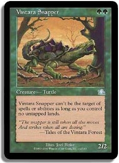 Vintara Snapper can't be the target of spells or abilities as long as you control no untapped lands.