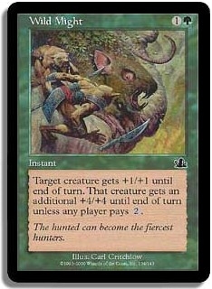 Target creature gets +1/+1 until end of turn. That creature gets an additional +4/+4 until end of turn unless any player pays 2.