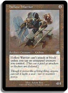 Hollow Warrior can't attack or block unless you tap an untapped creature you control not declared as an attacking or blocking creature this turn. (This cost is paid as attackers or blockers are declared.)
