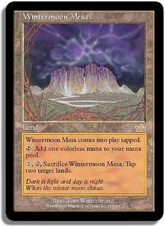 Wintermoon Mesa comes into play tapped. T: Add one colorless mana to your mana pool. 2 T Sacrifice Wintermoon Mesa: Tap two target lands.