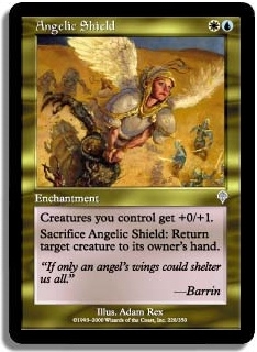 Creatures you control get +0/+1. Sacrifice Angelic Shield: Return target creature to its owner's hand.