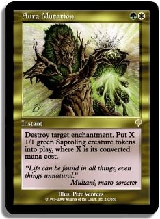 Destroy target enchantment. Put X 1/1 green Saproling creature tokens into play where X is its converted mana cost.