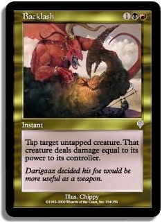 Tap target untapped creature. That creature deals damage equal to its power to its controller.