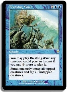 You may play Breaking Wave any time you could play an instant if you pay 2 more to play it. Simultaneously untap all tapped creatures and tap all untapped creatures.
