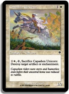 1W T Sacrifice Capashen Unicorn: Destroy target artifact or enchantment.