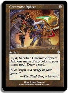 1 T Sacrifice Chromatic Sphere: Add one mana of any color to your mana pool. Draw a card.