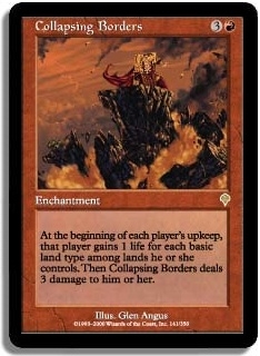 At the beginning of each player's upkeep that player gains 1 life for each basic land type among lands he or she controls. Then Collapsing Borders deals 3 damage to him or her.