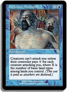 Creatures can't attack you unless their controller pays X for each creature attacking you where X is the number of basic land types among lands you control. (This cost is paid as attackers are declared.)