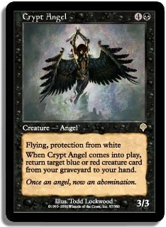 Flying protection from white When Crypt Angel comes into play return target blue or red creature card from your graveyard to your hand.