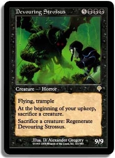 Flying trample At the beginning of your upkeep sacrifice a creature. Sacrifice a creature: Regenerate Devouring Strossus.