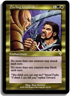 No more than one creature may attack each turn. No more than one creature may block each turn.