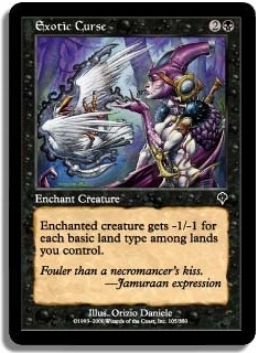 Enchanted creature gets -1/-1 for each basic land type among lands you control.