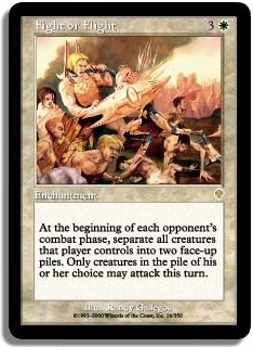 At the beginning of each opponent's combat phase separate all creatures that player controls into two face-up piles. Only creatures in the pile of his or her choice may attack this turn.