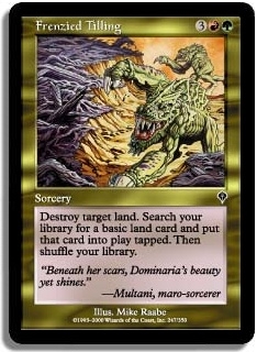 Destroy target land. Search your library for a basic land card and put that card into play tapped. Then shuffle your library.