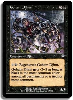 1B: Regenerate Goham Djinn. Goham Djinn gets -2/-2 as long as black is the most common color among all permanents or is tied for most common.
