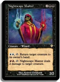 UU T: Return target creature to its owner's hand. RR T: Nightscape Master deals 2 damage to target creature.