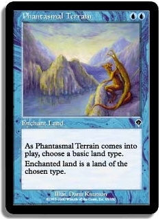 As Phantasmal Terrain comes into play choose a basic land type. Enchanted land's type is the chosen type.