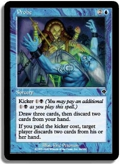 Kicker 1B (You may pay an additional 1B as you play this spell.) Draw three cards then discard two cards from your hand. If you paid the kicker cost target player discards two cards from his or her hand.