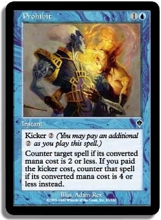 Kicker 2 (You may pay an additional 2 as you play this spell.) Counter target spell if its converted mana cost is 2 or less. If you paid the kicker cost counter that spell if its converted mana cost is 4 or less instead.
