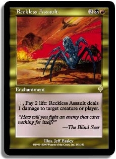 1 Pay 2 life: Reckless Assault deals 1 damage to target creature or player.