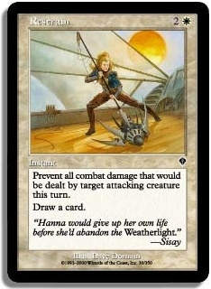 Prevent all combat damage that would be dealt by target attacking creature this turn. Draw a card.