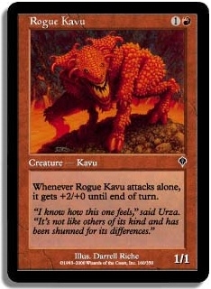 Whenever Rogue Kavu attacks alone it gets +2/+0 until end of turn.