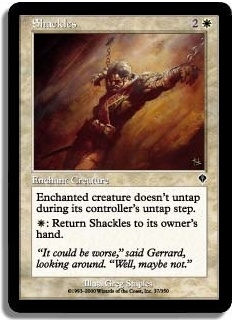 Enchanted creature doesn't untap during its controller's untap step. W: Return Shackles to its owner's hand.