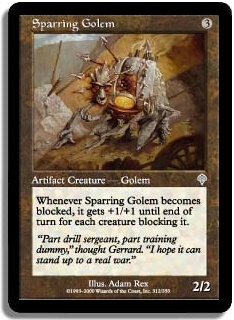 Whenever Sparring Golem becomes blocked it gets +1/+1 until end of turn for each creature blocking it.