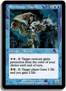 WW T: Target creature gains protection from the color of your choice until end of turn. BB T: Target player loses 2 life and you gain 2 life.