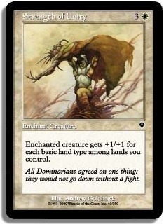 Enchanted creature gets +1/+1 for each basic land type among lands you control.
