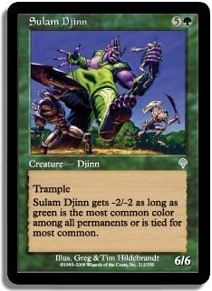 Trample Sulam Djinn gets -2/-2 as long as green is the most common color among all permanents or is tied for most common.