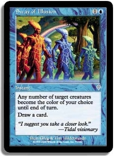 Any number of target creatures become the color of your choice until end of turn. Draw a card.