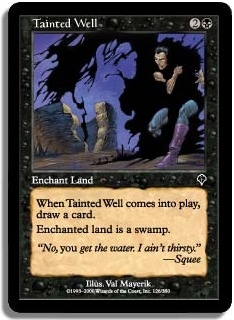 When Tainted Well comes into play draw a card. Enchanted land is a swamp.