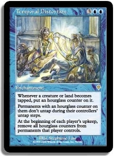 Whenever a creature or land becomes tapped put an hourglass counter on it. Permanents with an hourglass counter on them don't untap during their controllers' untap steps. At the beginning of each player's upkeep remove all hourglass counters from permanents that player controls.