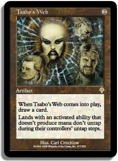 When Tsabo's Web comes into play draw a card. Lands with an activated ability that doesn't produce mana don't untap during their controllers' untap steps.