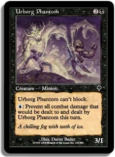 Urborg Phantom can't block. U: Prevent all combat damage that would be dealt to and dealt by Urborg Phantom this turn.