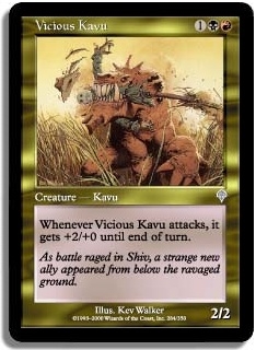 Whenever Vicious Kavu attacks it gets +2/+0 until end of turn.