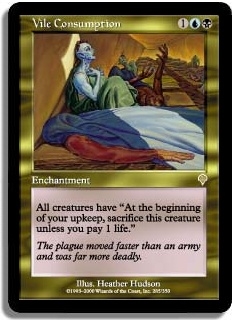 All creatures have "At the beginning of your upkeep sacrifice this creature unless you pay 1 life."