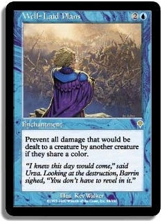 Prevent all damage that would be dealt to a creature by another creature if they share a color.
