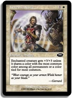 Enchanted creature gets +3/+3 unless it shares a color with the most common color among all permanents or a color tied for most common.