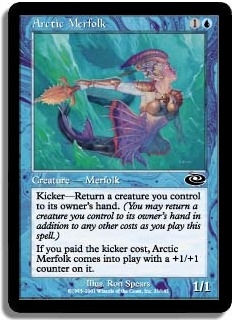 KickerReturn a creature you control to its owner's hand. (You may return a creature you control to its owner's hand in addition to any other costs as you play this spell.) If you paid the kicker cost Arctic Merfolk comes into play with a +1/+1 counter on it.