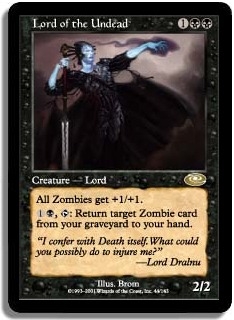 All Zombies get +1/+1. 1B T: Return target Zombie card from your graveyard to your hand.