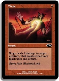Singe deals 1 damage to target creature. That creature becomes black until end of turn.