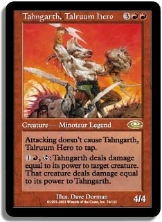 1R,T:Tahngarth deals damage equal to its power to target creature. That creature deals damage equal to it power to Tahngarth.